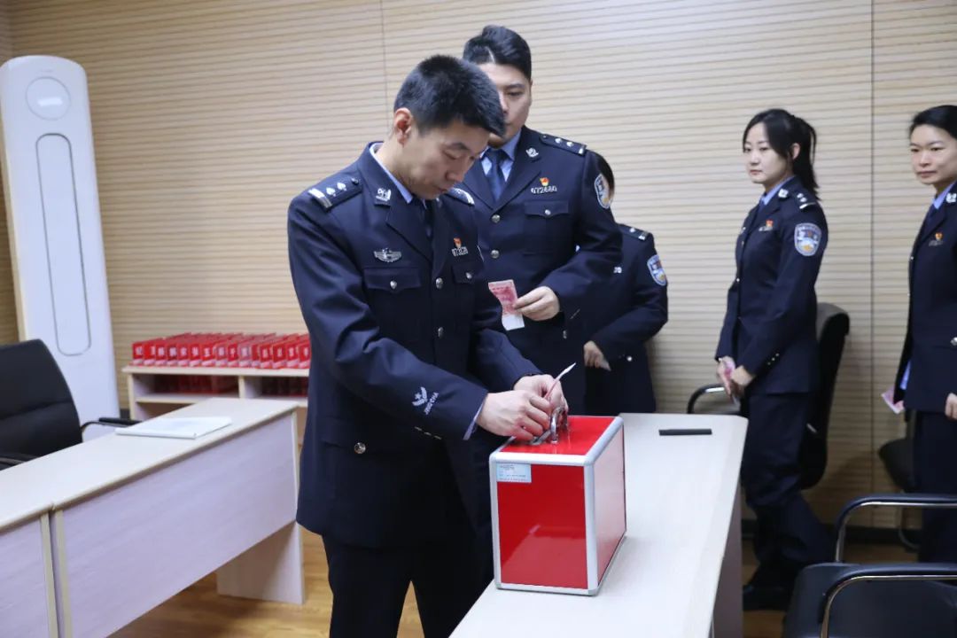 派出所党员民警依次向前、踊跃捐款