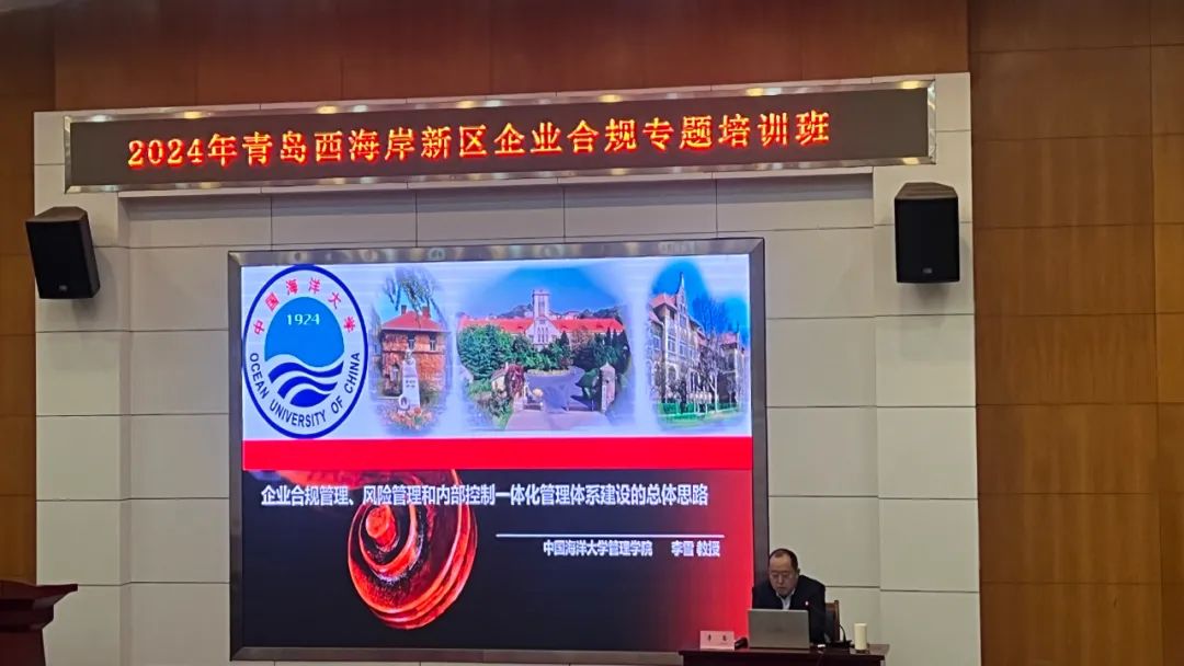 为进一步加强对青岛西海岸新区企业合规工作的服务保障力度,提升企业合规管理能力,促进企业持续健康快速发展,近日,由青岛西海岸新区司法局主办,青岛职业技术学院风险(合规)管理研究中心承办的青岛西海岸新区企业合规专题培训班成功举办。本次活动邀请多位具备丰富合规体系建设经验的资深专家,以“企业合规管理建设”为主题进行授课,主要针对新区区属国企、头部民企以及相关部门企业合规业务负责人开展,共计200余人次参加。