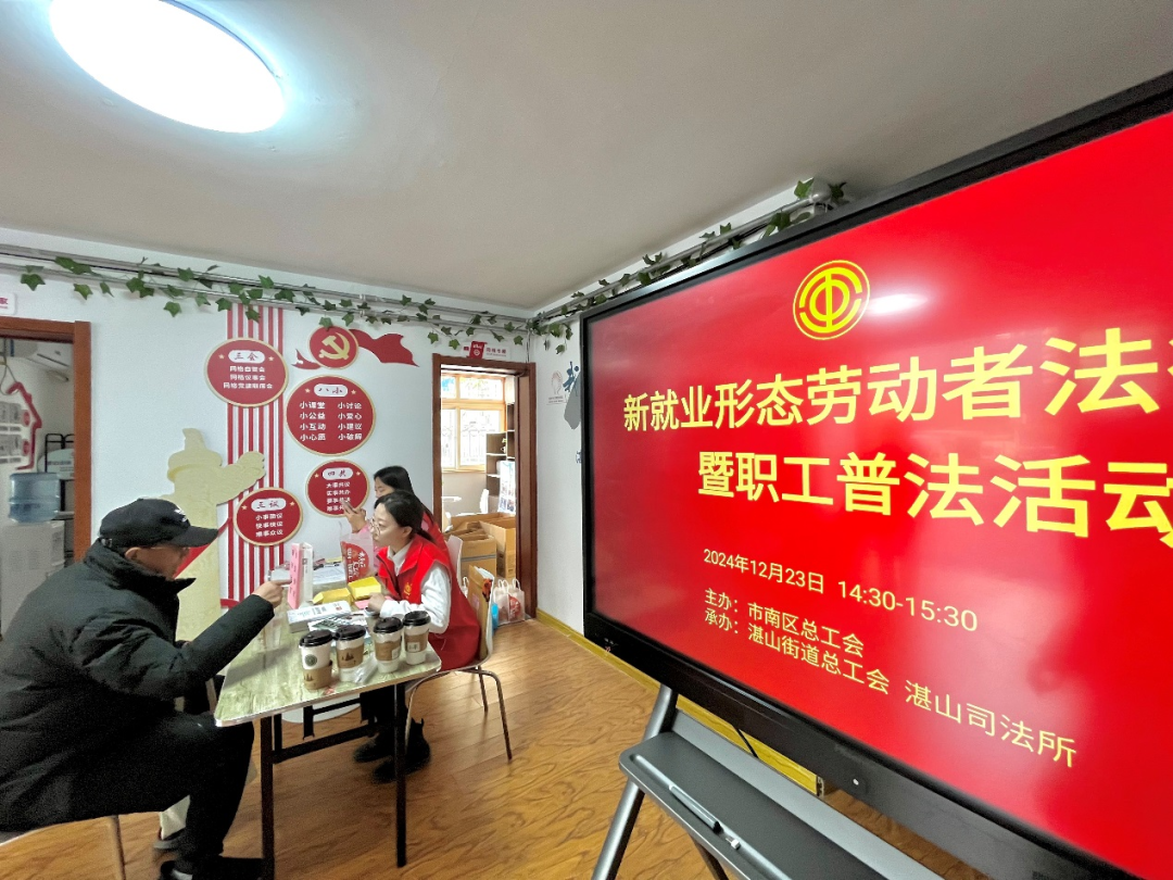 为切实履行工会维护职工合法权益的基本职能,提升广大职工的法律素养,近日,青岛市市南区湛山司法所联合湛山街道工会在新湛二路网格学院举办新就业形态劳动者普法宣传活动。活动巧用宣传法律知识、设置有奖问答等多元形式,全力营造热烈浓厚的普法氛围。