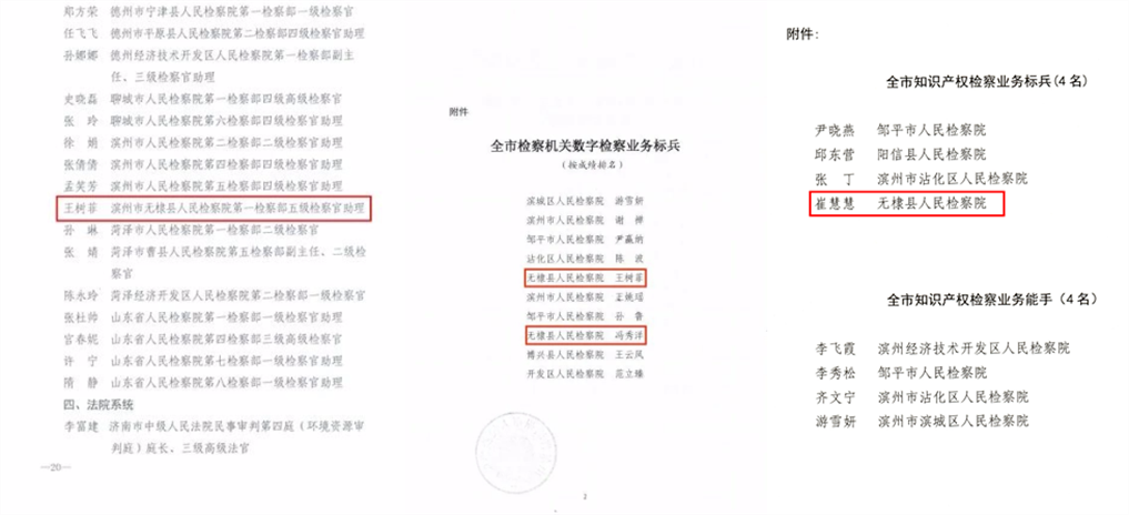 2024年,无棣县检察院立足法律监督定位,聚焦主责主业,奋力以检察工作现代化服务“六个无棣”建设,各项工作在稳步发展中实现了新的突破,1名干警入选“全国检察机关检务保障人才库”,1个数字检察监督模型被最高检冠名推广,大数据综合治理平台被省委政法委评选为“全省数字法治系统建设优秀案例”,3名干警荣获省级以上表彰,院机关被授予集体荣誉24项。