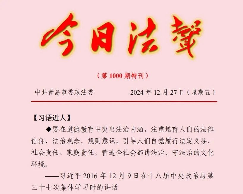 千期历程见证法治之光 砥砺前行铸就政法标杆——青岛《今日法声》第1000期侧记