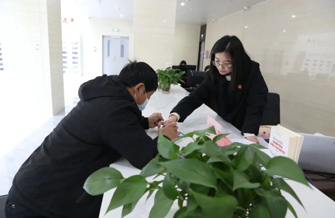 干警们正在帮助当事人立案