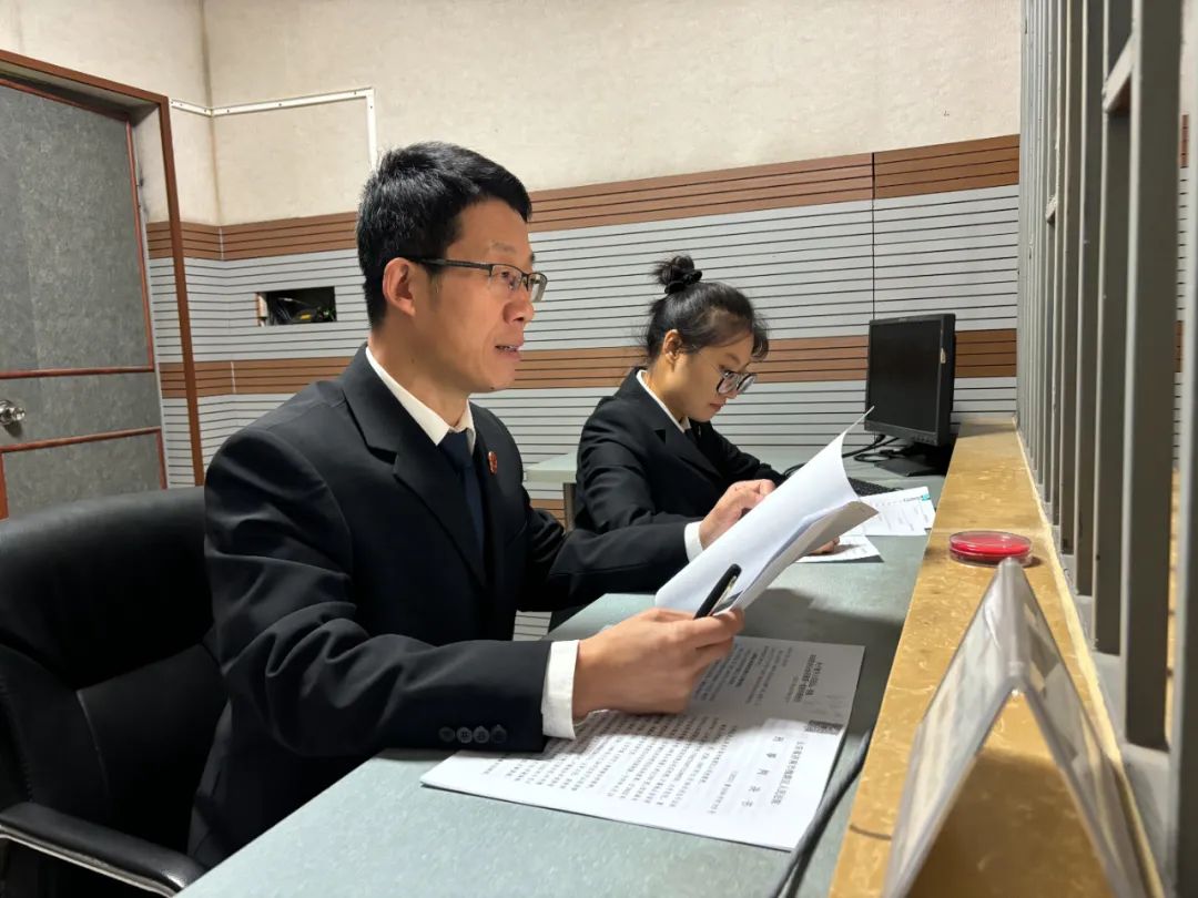 法官及助理正对案件嫌疑人进行讯问