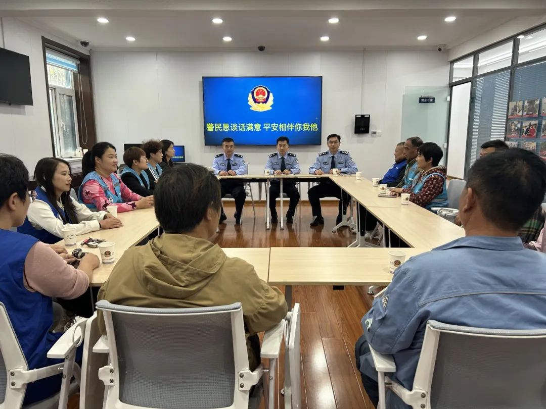 在齐鲁化工园区警务服务中心,南王派出所联合临淄交警金山中队围绕社会治安、电信网络诈骗、巡逻防范、交通宣传等群众关心关注的热点问题,开展深入交流,征求群众意见建议。