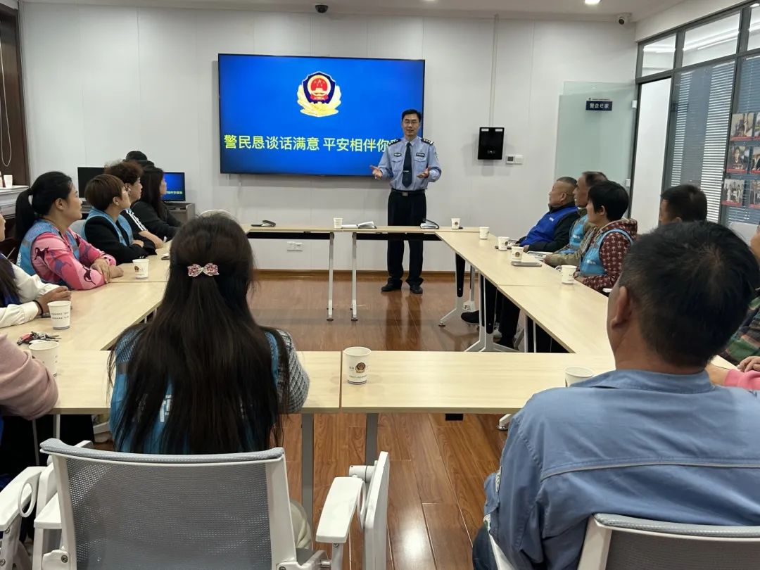 在鞠源社区,民警对涉及社区居民切身利益的电信诈骗、社区安全等事项进行了宣传讲解,并就社区治安等群众关心的问题进行了深入交流。
