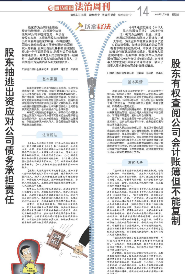 寒亭区人民法院法官王美丽表示,抽逃出资行为不仅损害了公司、其他股东及债权人、投资人的合法权益,也破坏了商业交易的稳定性和公平性。股东作为公司的出资人,既享有权利也需尽到义务,未经法定程序抽逃出资,应当在抽逃出资范围内承担责任。