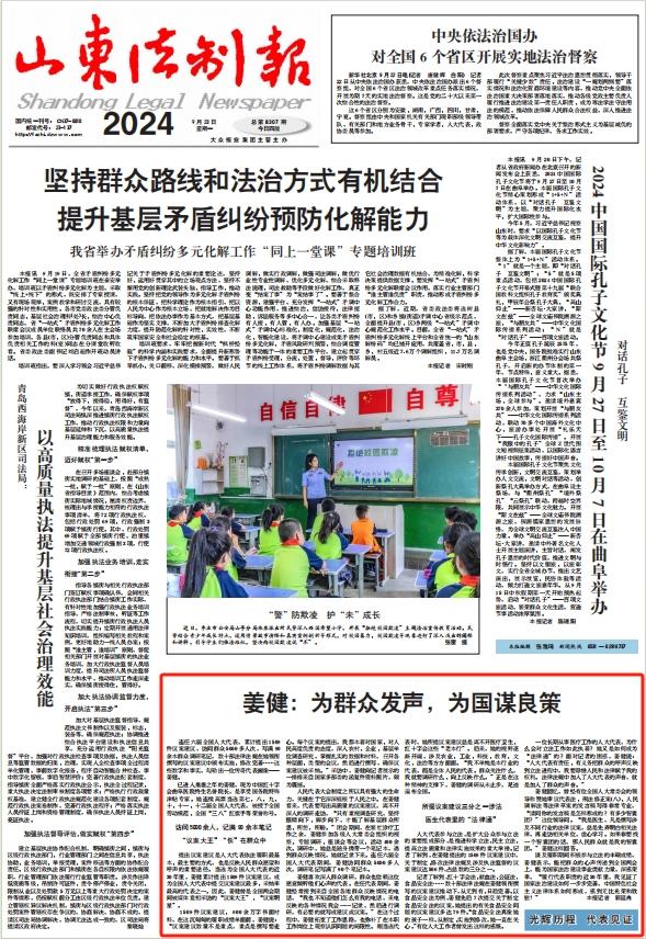 谈及履职期间积极参与立法的丰硕成绩,姜健表示,能把群众的心声传递到全国两会上,能为国家法治建设事业贡献力量,深感荣幸,“履行代表职责的近30年里,我见证了国家法治建设如何一步步完善,中国特色社会主义法律体系如何形成,感到无比光荣和欣慰!”