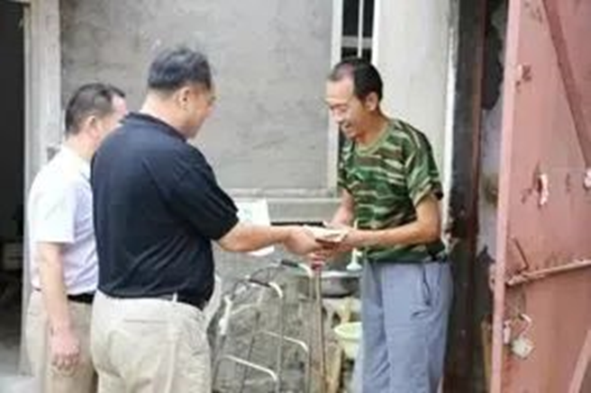 图为2017年8月26日下午白广河主任对小齐同学及其家人进行帮扶,并将学费、生活费交于小齐同学的父亲手中。