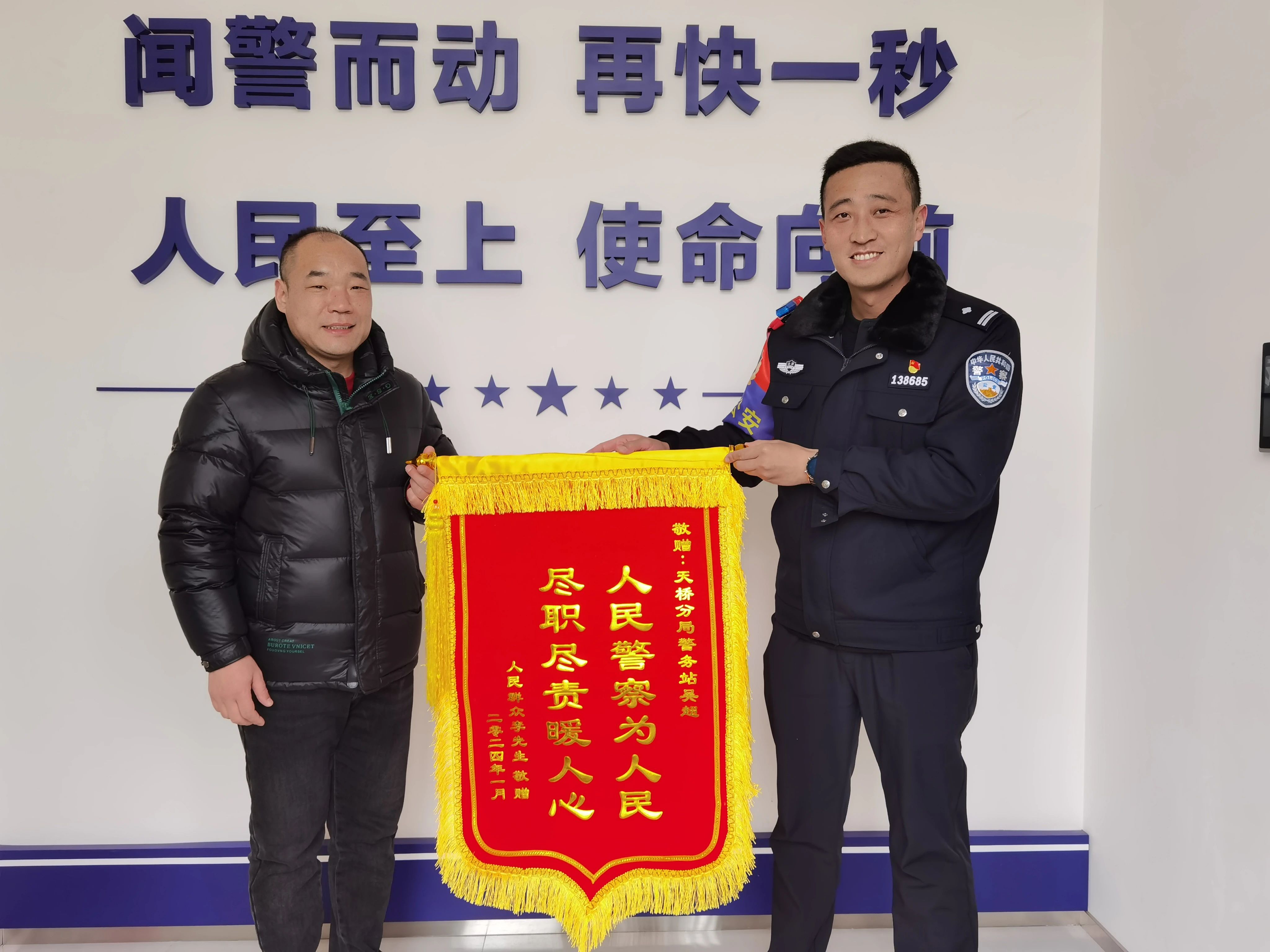 办公桌旁的柜子顶上有一面锦旗,被仔仔细细地卷起来安放着,不仔细看几乎注意不到。吴超说,那是自警务站开设以来收到的第一面锦旗,也是目前为止唯一的一面。“那为什么不挂出来?”“心意收下了就好。”一听记者这么问,吴超笑了笑,只说:“这些都是作为民警应当做的。”