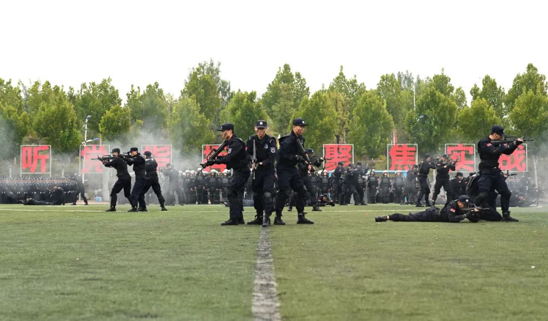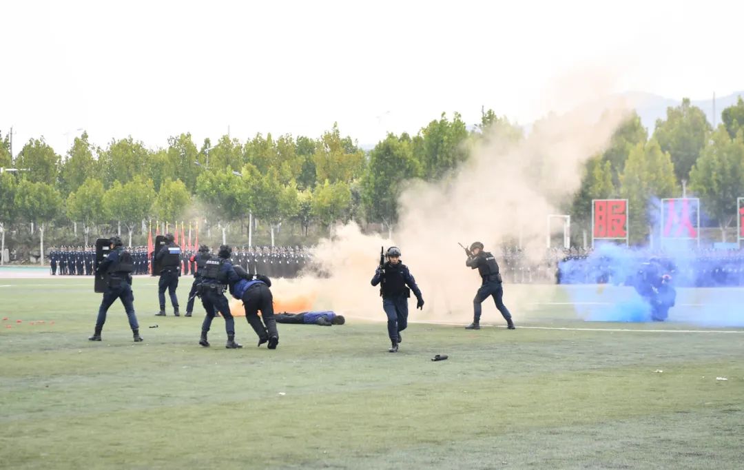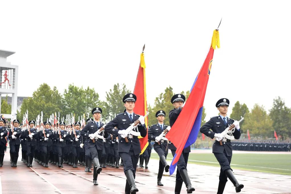 阅警式上,还进行了升国旗、迎警旗、分列式和新生宣誓仪式,宣读了《山东警察学院关于授予2024级新生警察学员标志的决定》。2024级新生精神饱满、警姿飒爽、整齐划一,全面展示了严格训练取得的阶段性成果。高年级学生进行了警务搏击、最小作战单元、防暴处突等警务实战科目演练,汇报了实战技能教学训练成果。