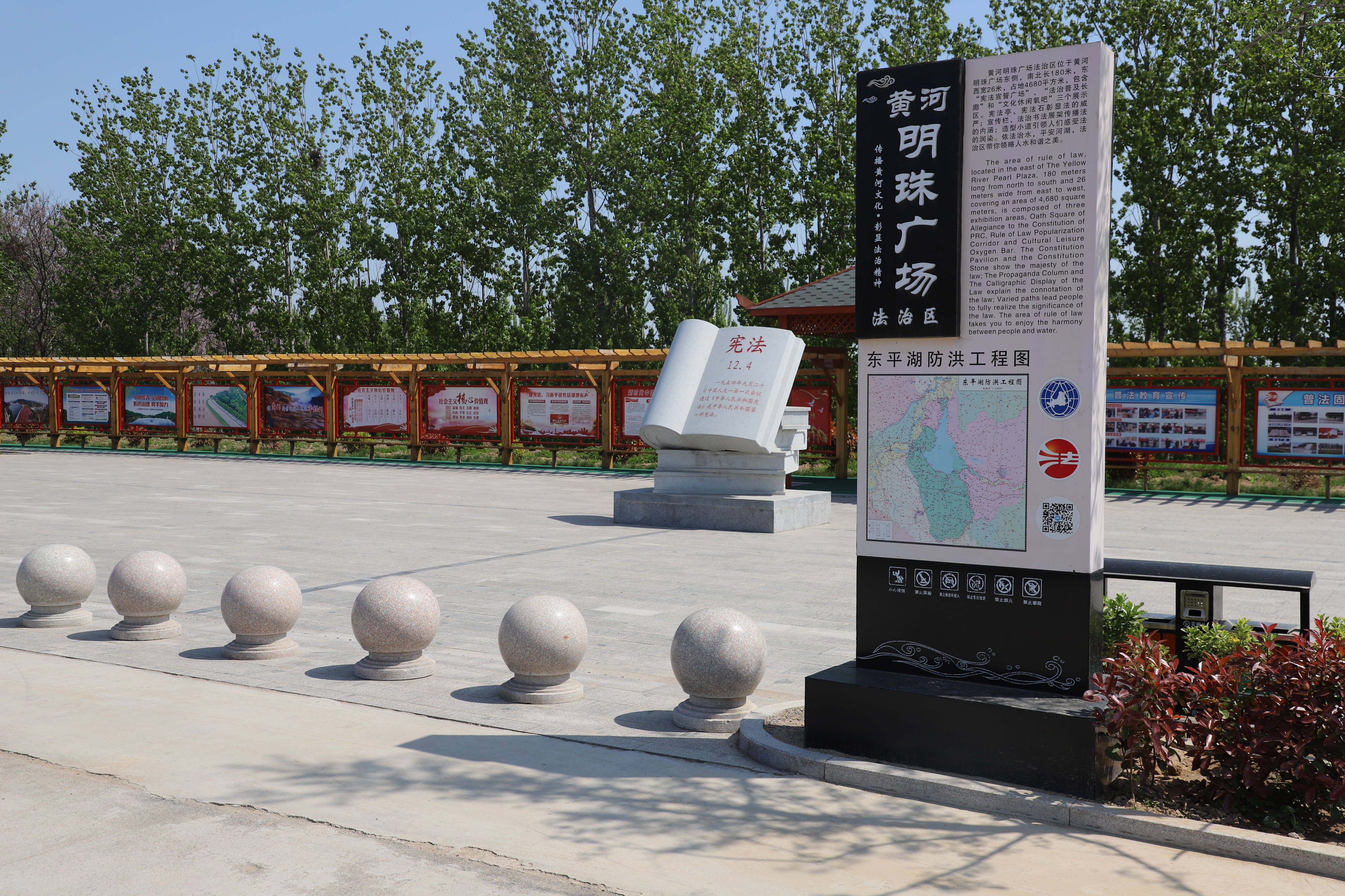 加强普法阵地建设。将黄河文化、运河文化、红色文化、法治文化有机融合,着力聚焦“普法长廊集群、示范基地建设、法治文化作品”三大品牌,以35公里的黄河梁山段为基础,以传承和发扬黄河法治文化为核心,充分发挥黄河明珠广场(宪法广场)和黄河民法典公园(两省三市交界处)两翼的带动作用,依托黄、湖堤周边民主法治示范村(社区)、中小学,打造集黄河文化、法治文化、廉政文化、党建文化为一体的“法润黄河”法治文化景观带,使法治阵地成为黄河岸边一道美丽的风景线。