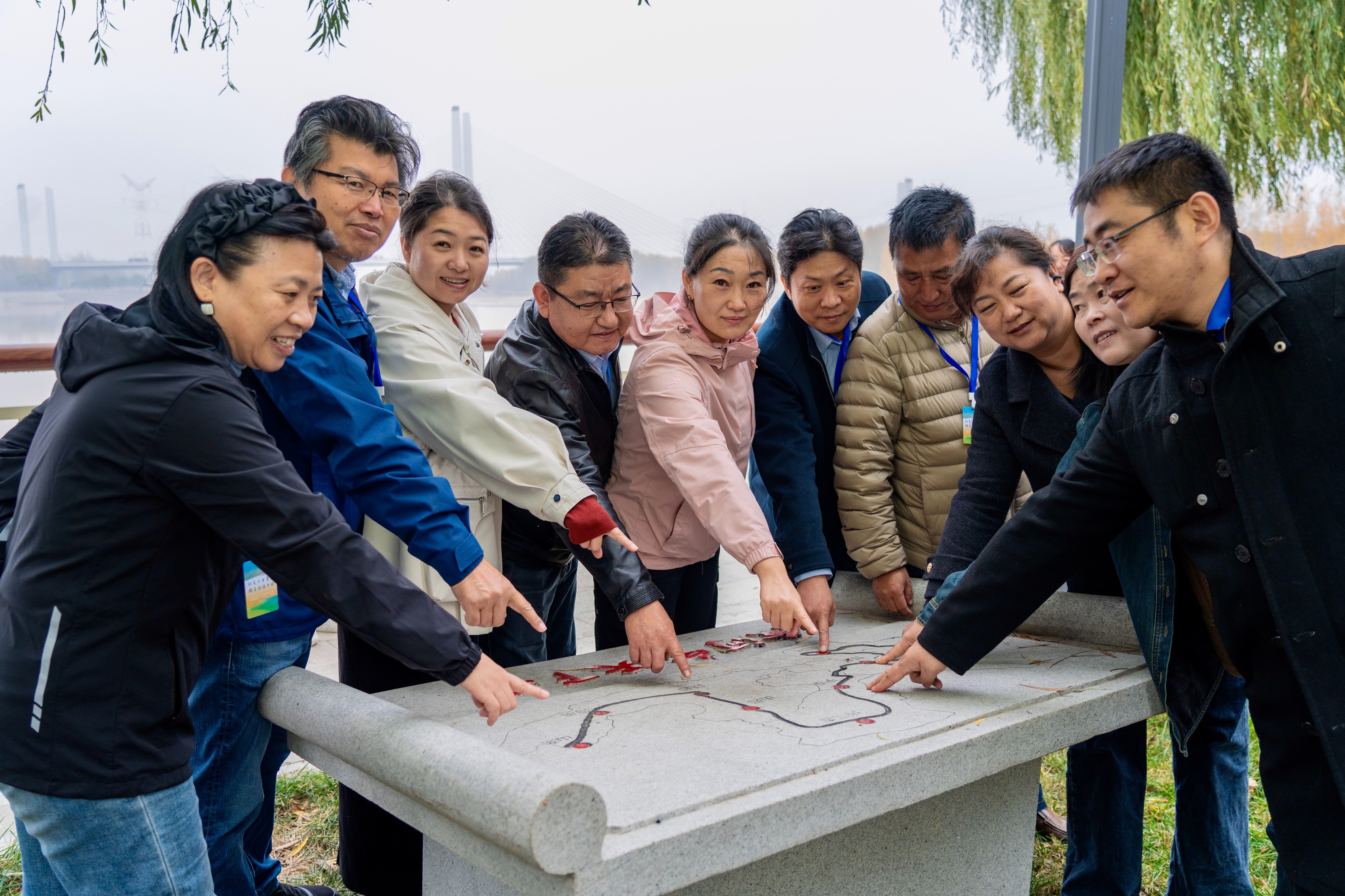 采访团在黄河大道张肖堂险工参观