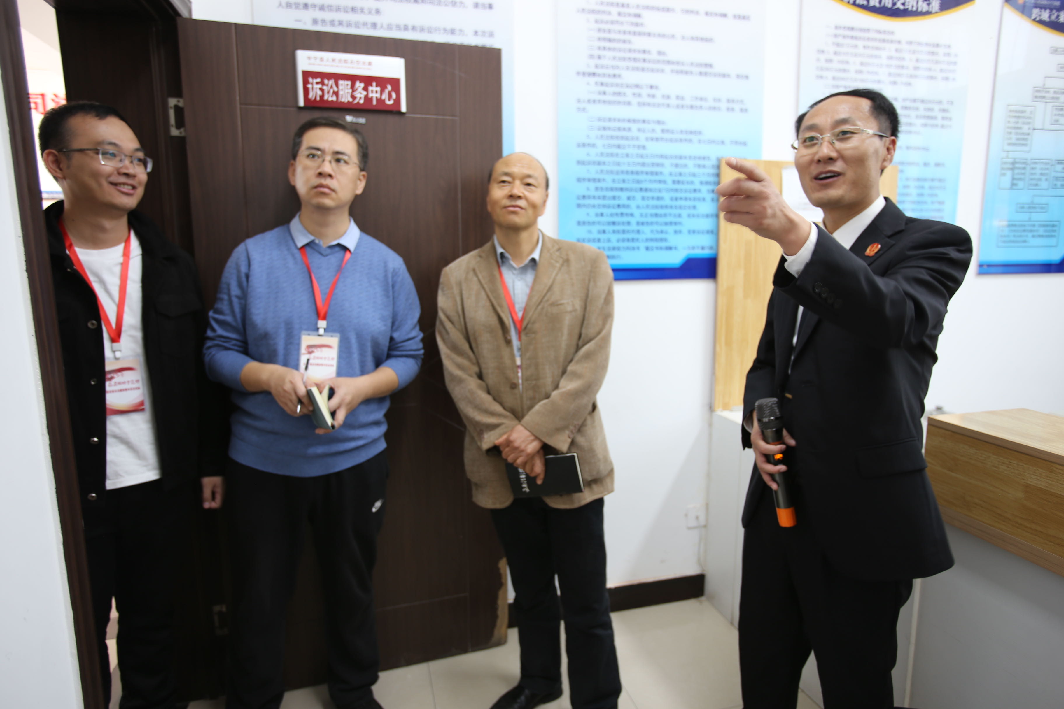 中宁县法院石空法庭庭长王虎刚向采访团介绍法庭诉讼服务工作情况。