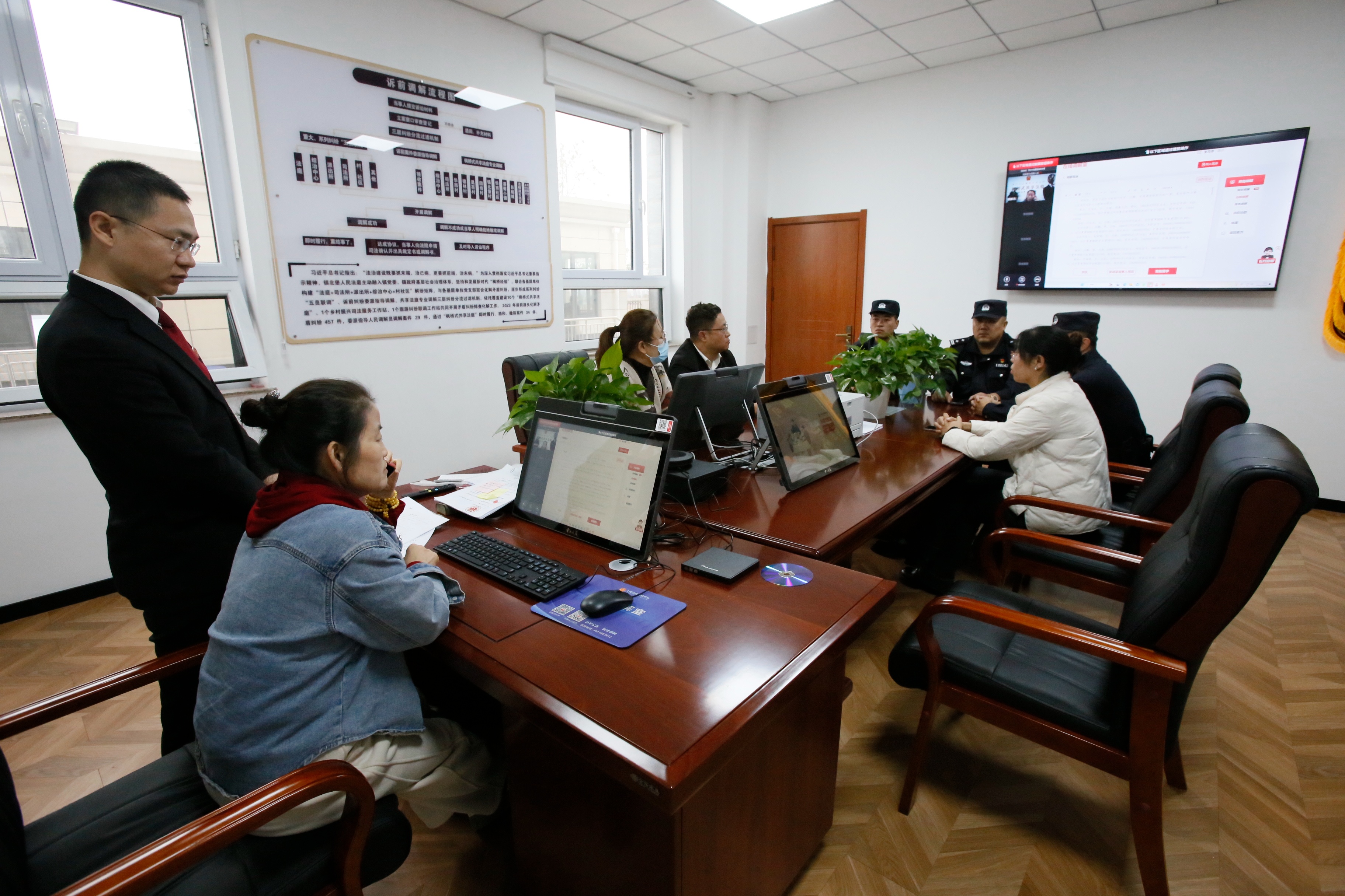 镇北堡法庭共享法庭正在利用远程视频系统调解一起纠纷案