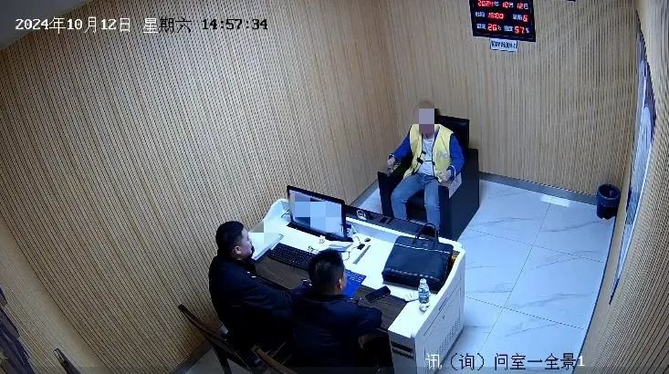 ▲审讯涉案嫌疑人刘某