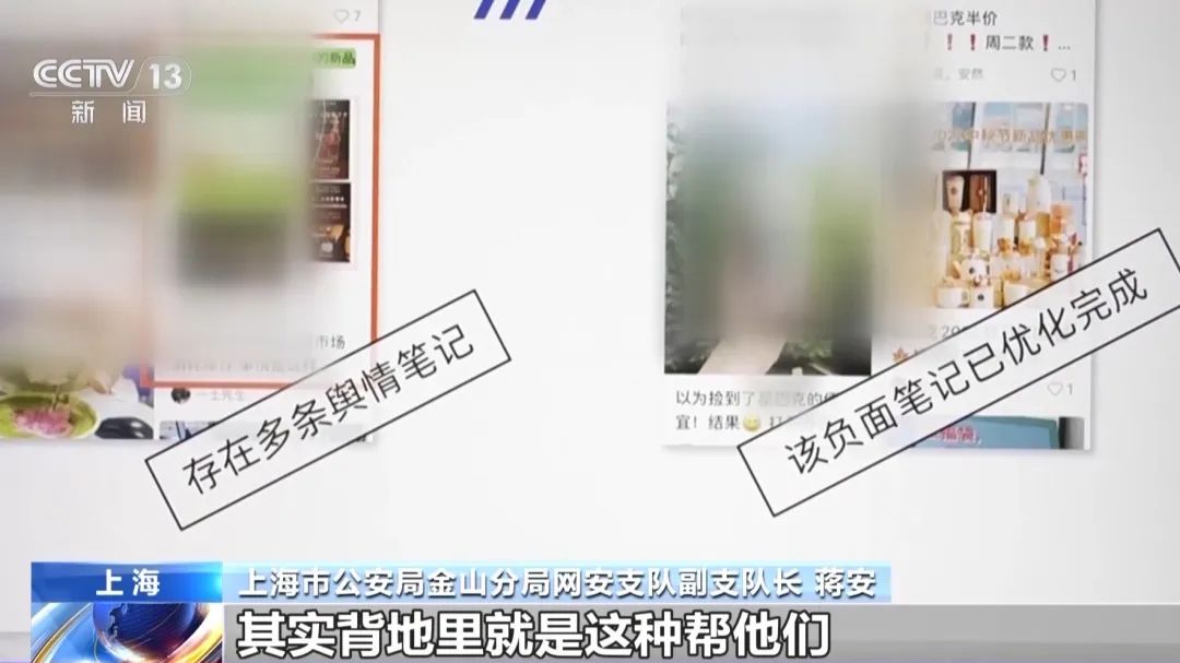 上海市公安局金山分局网安支队副支队长蒋安:“正常的网红或者大V是先收到产品之后,写一些体验式文章,用过感觉怎么样的文章。他们是没有收到过任何产品,也没有去体验过这些服务,就写出了体验式的文章。”