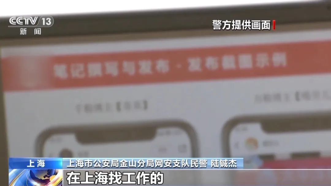 上海市公安局金山分局网安支队民警陆铖杰:“这个千粉博主有可能是家庭主妇的形象,有可能是在上海找工作的青年的形象,还有夸公司好的公司员工的形象。警方通过进一步调查发现,这些账号实际受雇于上海某文化有限公司,账号持有人在接收到相关发布任务后,按要求批量编写虚假的正面帖文。”