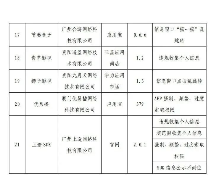 近期,工业和信息化部组织第三方检测机构进行抽查,共发现21款APP及SDK存在侵害用户权益行为,现予以通报。