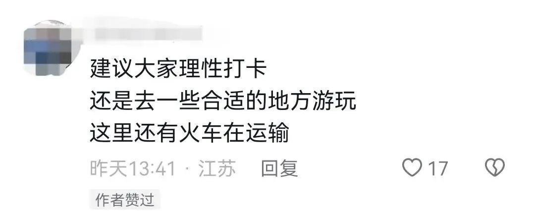 在视频评论区,有网民表示,这里很危险,毕竟不是公开旅游地,建议大家理性打卡,去一些合适的地方游玩。