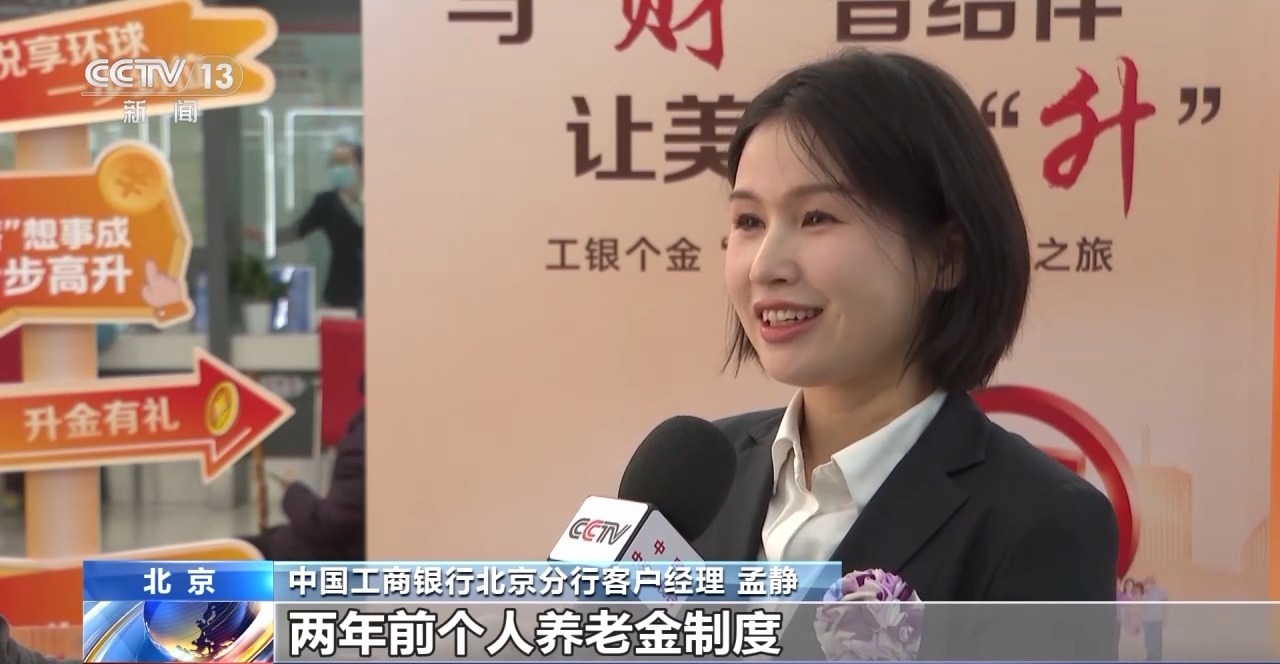 中国工商银行北京分行客户经理孟静:“两年前个人养老金制度刚刚开始试点的时候,我们需要在网点举办沙龙,走进社区,走进对公单位的形式。现在是客户主动过来找我们咨询办理,如果客户达到领取的条件,我行会第一时间联动相关机构及时开展核验,为客户领取提供便利。”