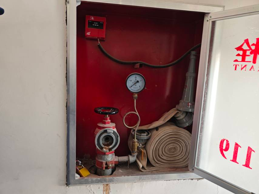 建筑楼楼顶北侧室内消火栓栓头损坏。