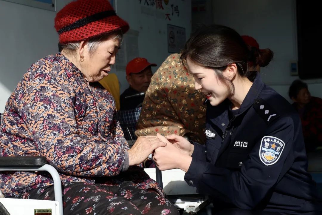 民警志愿者和老人们聚在一起