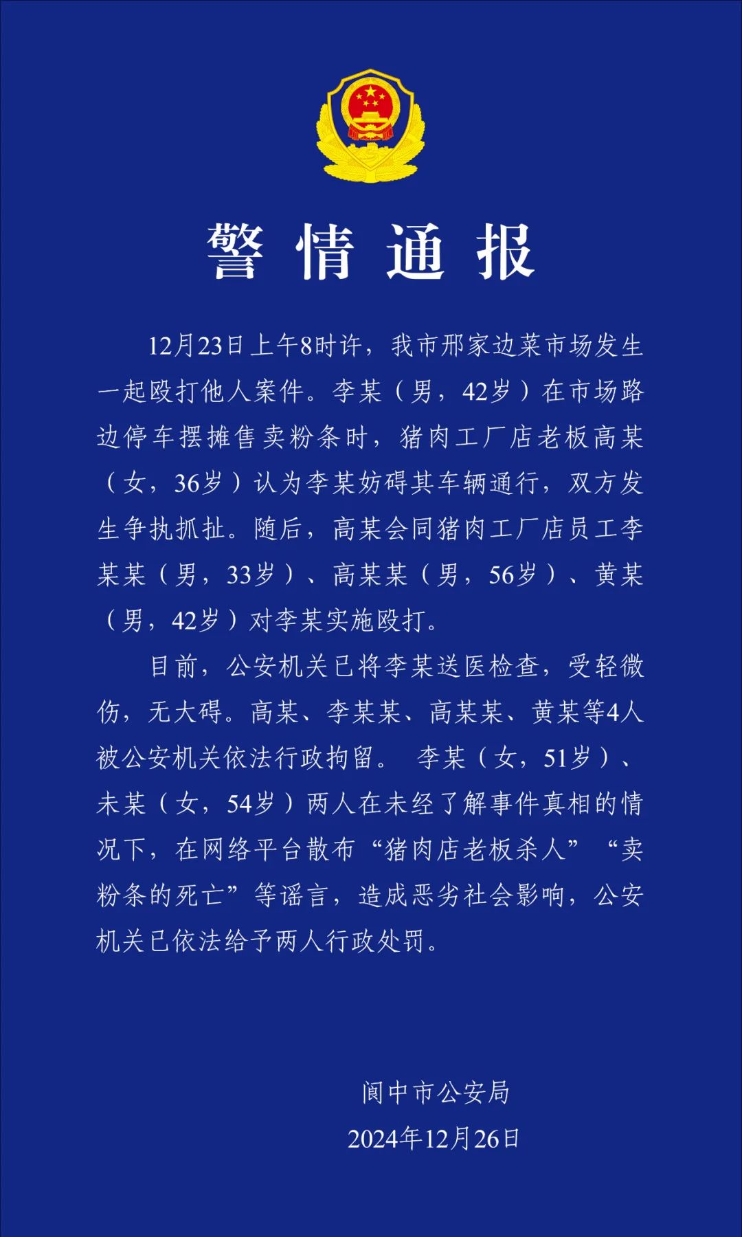 网传“猪肉店老板杀人”?警方通报