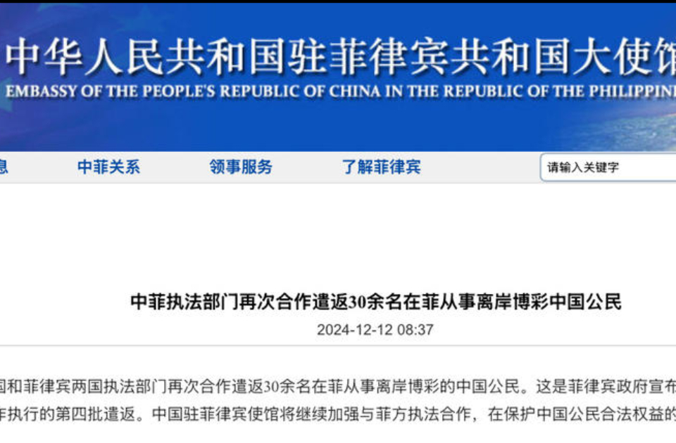 中菲执法部门再次合作遣返30余名在菲从事离岸博彩中国公民