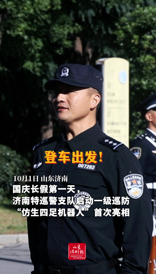 10月1日,济南特巡警支队启动一级巡防,“仿生四足机器人”首次亮相。市民游客:安全感满满,太帅了!