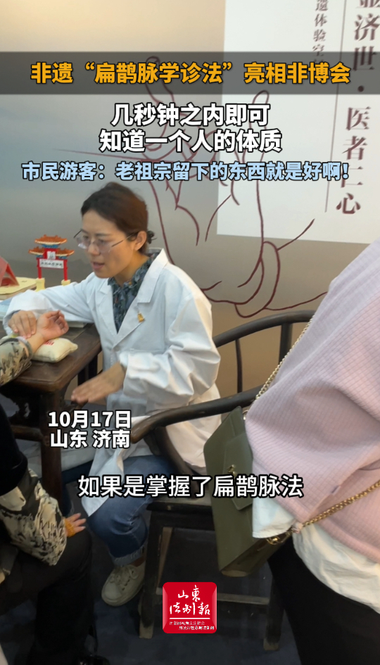 10月17日山东济南,第八届中国非遗博览会上,扁鹊脉学诊法亮相,几秒钟内即可知道一个人的体质。